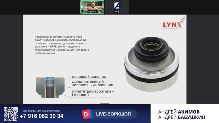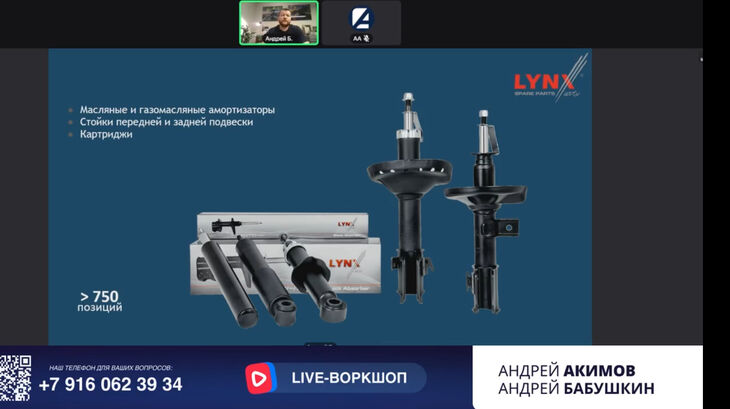 В прямом эфире спикеры обсудили ассортимент компании LYNXAuto, особое внимание уделили технологии производства амортизаторов. Представитель бренда рассказал о его истории и новостях. В конце спикер и ведущий ответили на вопросы подписчиков, провели викторину. Автор лучшего вопроса и победитель викторины получили призы.