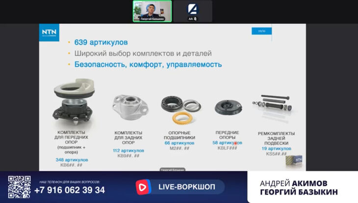 В прямом эфире спикеры обсудили ассортимент компании NTN-SNR, особое внимание уделили новинкам. Представитель бренда рассказал о его истории и новостях. В конце спикер и ведущий ответили на вопросы подписчиков, провели викторину. Автор лучшего вопроса и победитель викторины получили призы.